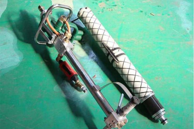 支腿幫錨桿機(jī)和手持式鉆機(jī)原理一樣,只是支撐方式不一樣。當(dāng)工作高度較高、鉆孔深度更大時,手持鉆機(jī)就無法使用,為解決這一問題,故氣動支腿式錨桿鉆機(jī)在研究人員的努力下問世了。氣動支腿式鉆機(jī)主要用來打幫和輔助打頂。深度可達(dá)12米,支撐高度達(dá)3.65米